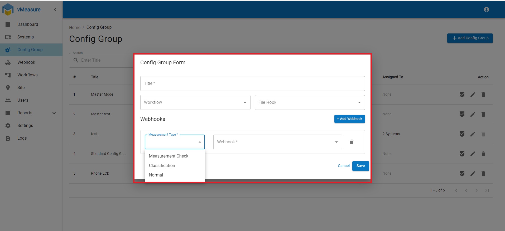 Step 6: Enter the Title, Select the workflow, Click on "Add Webhook" select the "Measurement type" from dropdown & Select the Webhook from dropdown then click on Save.