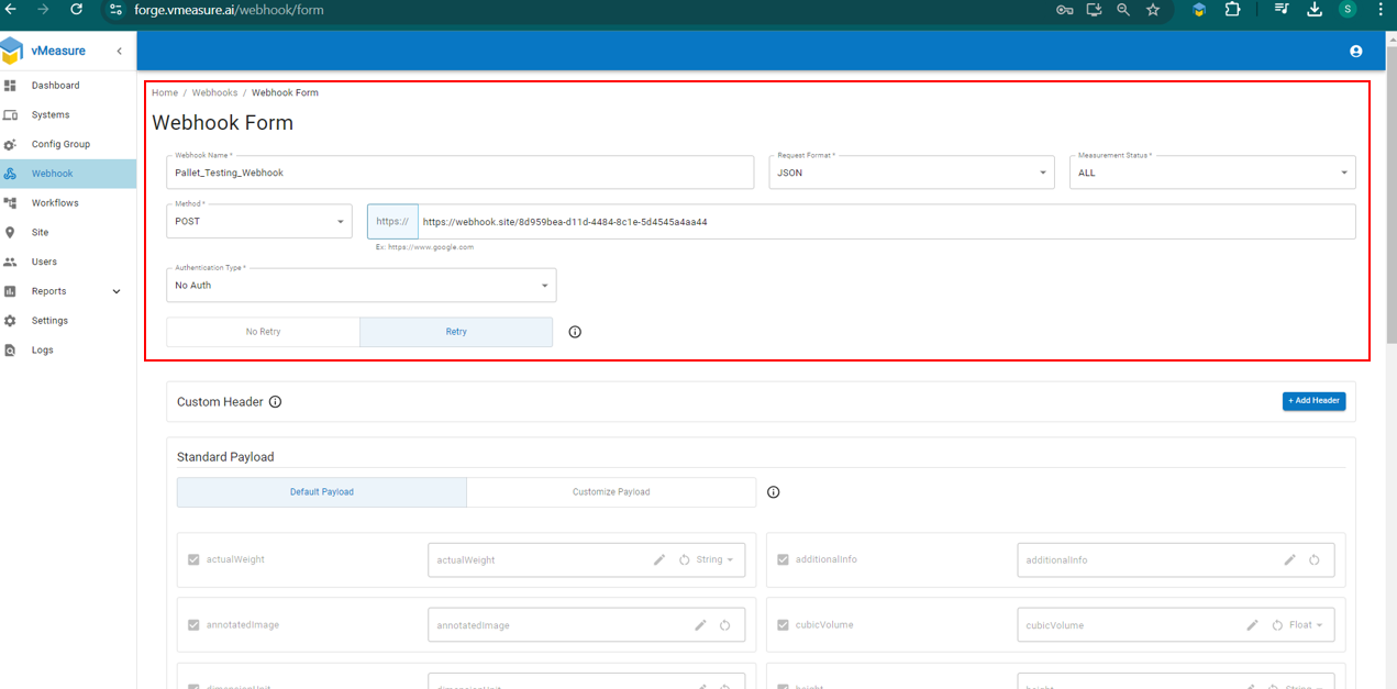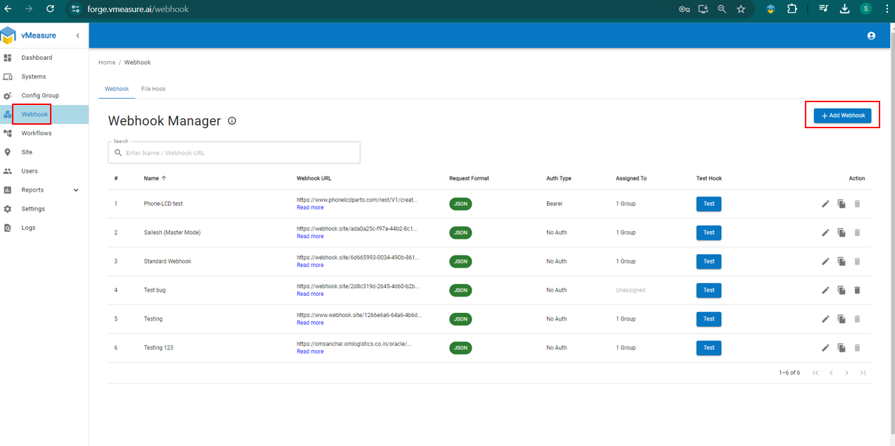 How to Add Webhook in vMeasure forge
