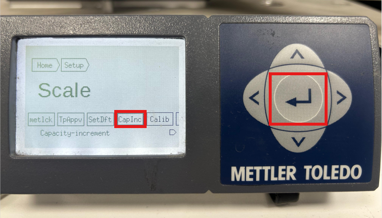 Step 5: Once the Cal button is pressed then Select CapInc and Enter.
