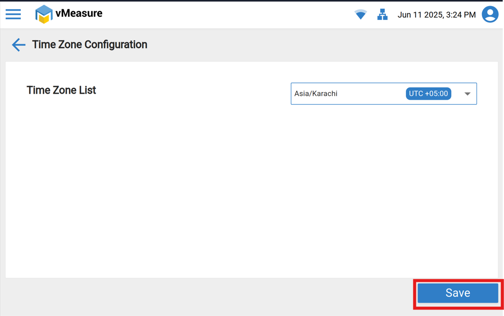 Step 3: Select the appropriate Time zone from the drop-down list and select the "Save" icon.