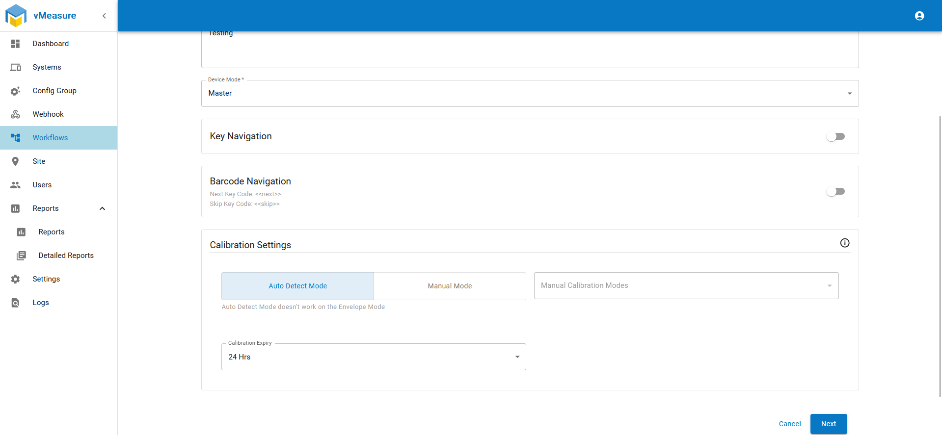 Step 4: Once in "Workflow Form" scroll down and in "Calibration Settings" and switch to "Auto Detect Mode".