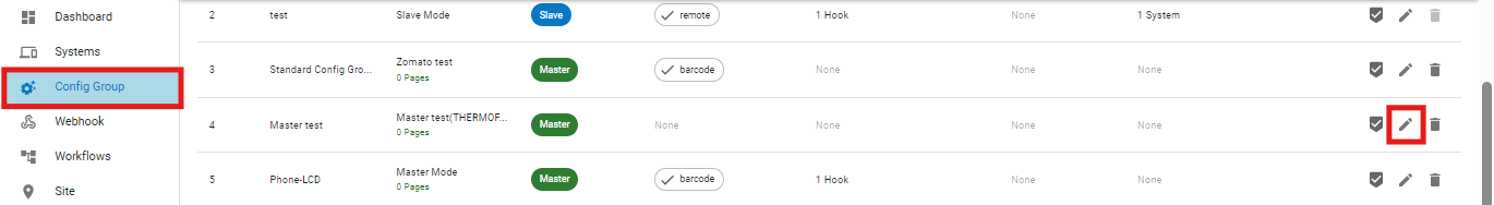 Step 8: Navigate to "Config Group" and click on the "Edit" icon of the group assigned to the system.