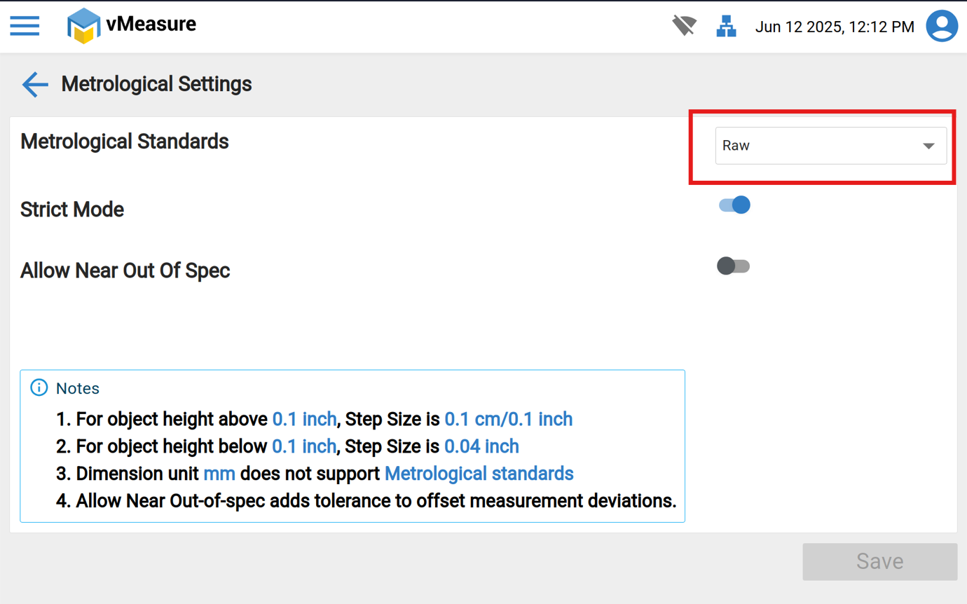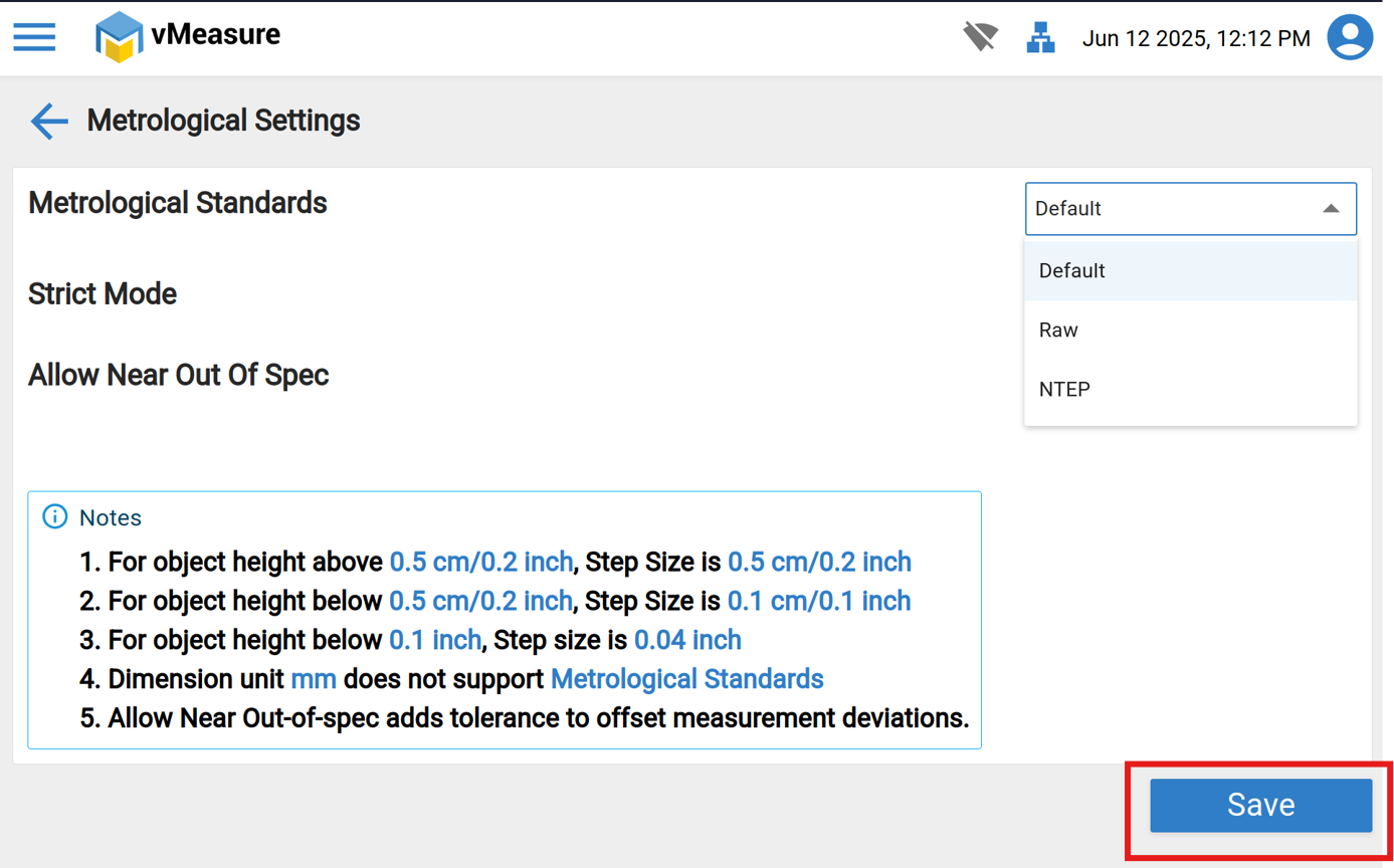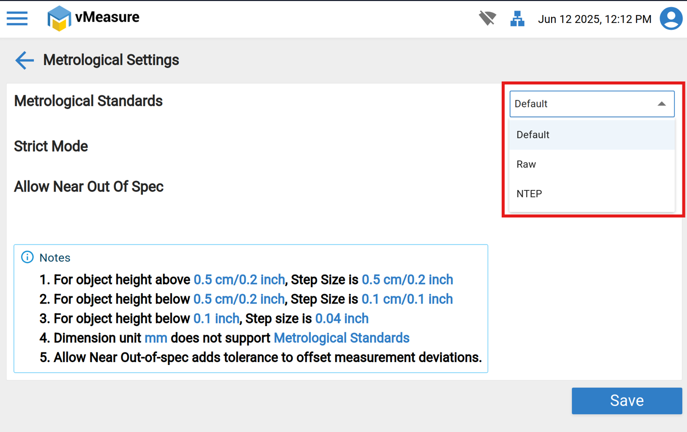 3. Select "Metrological Standard" and click on "Default" from drop-down.