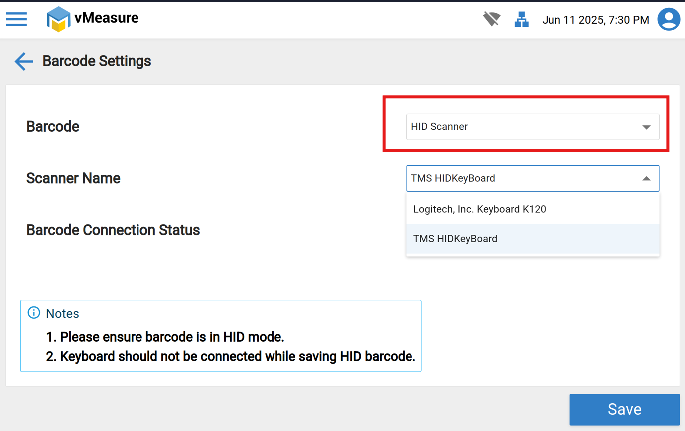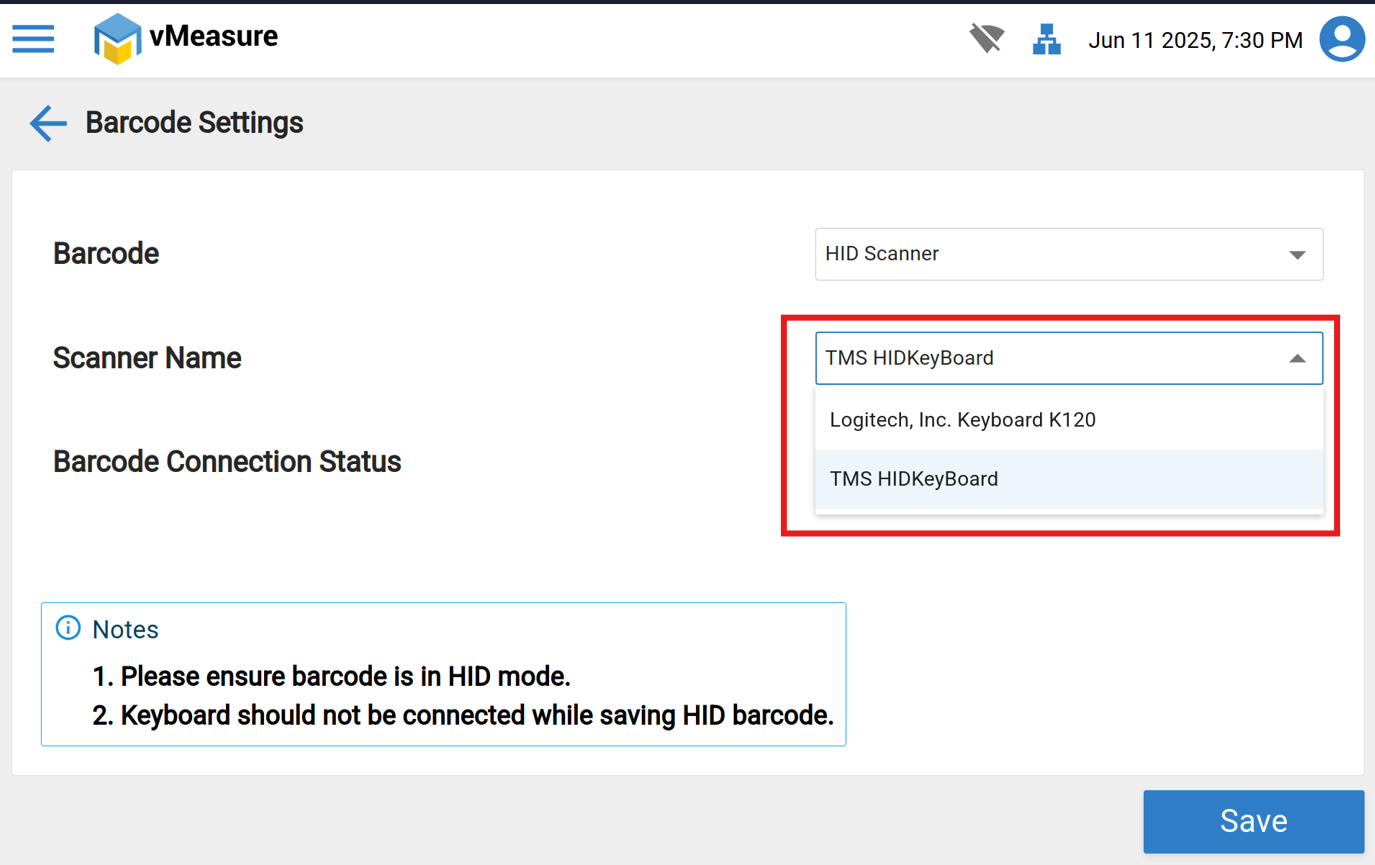 2. Select the desired Barcode and Scanner Name from Dropdown as shown in below image .