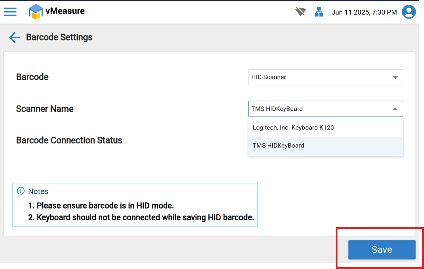 Note: Once saved, the barcode will be connected.