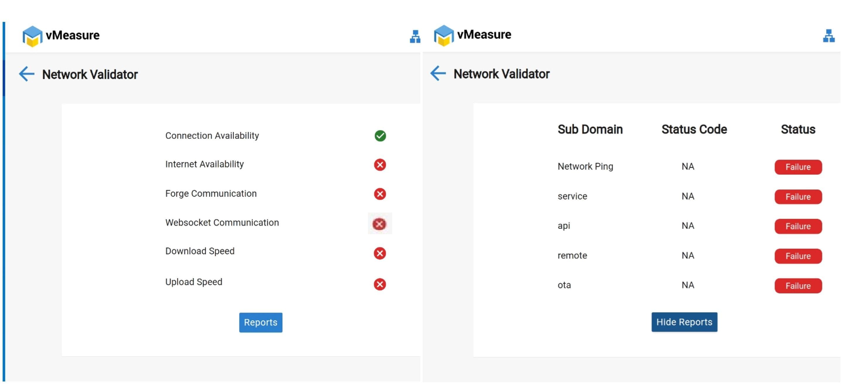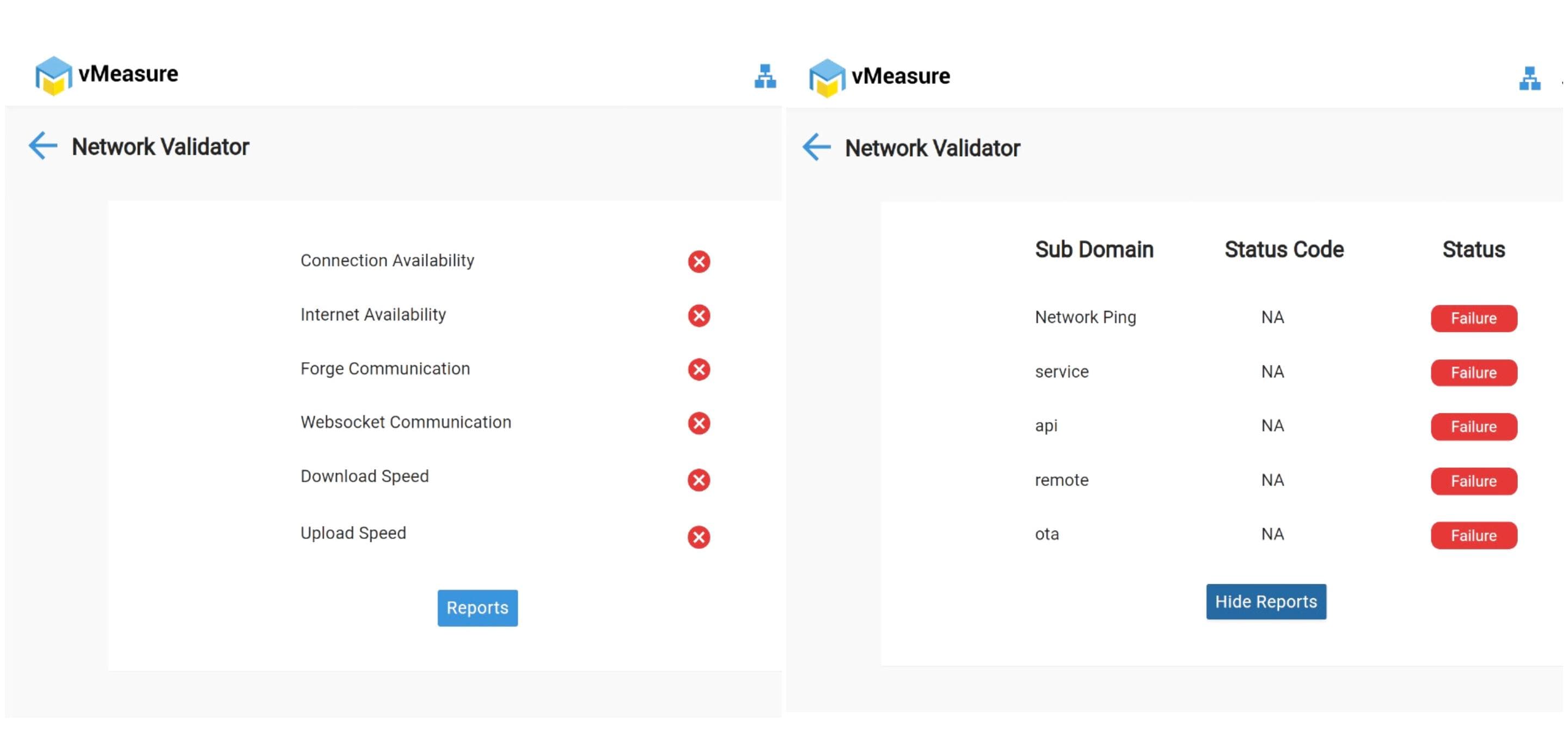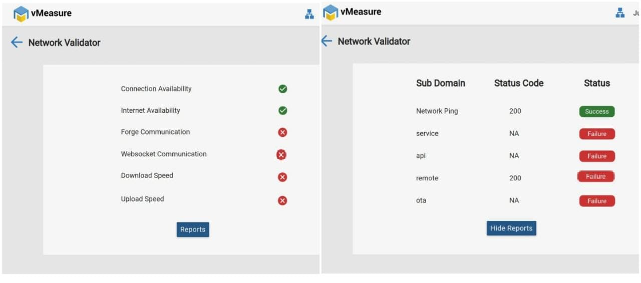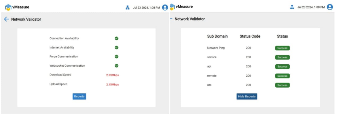 - If all the Test results are in green as below, which means the network connectivity is working fine in vMeasure device.