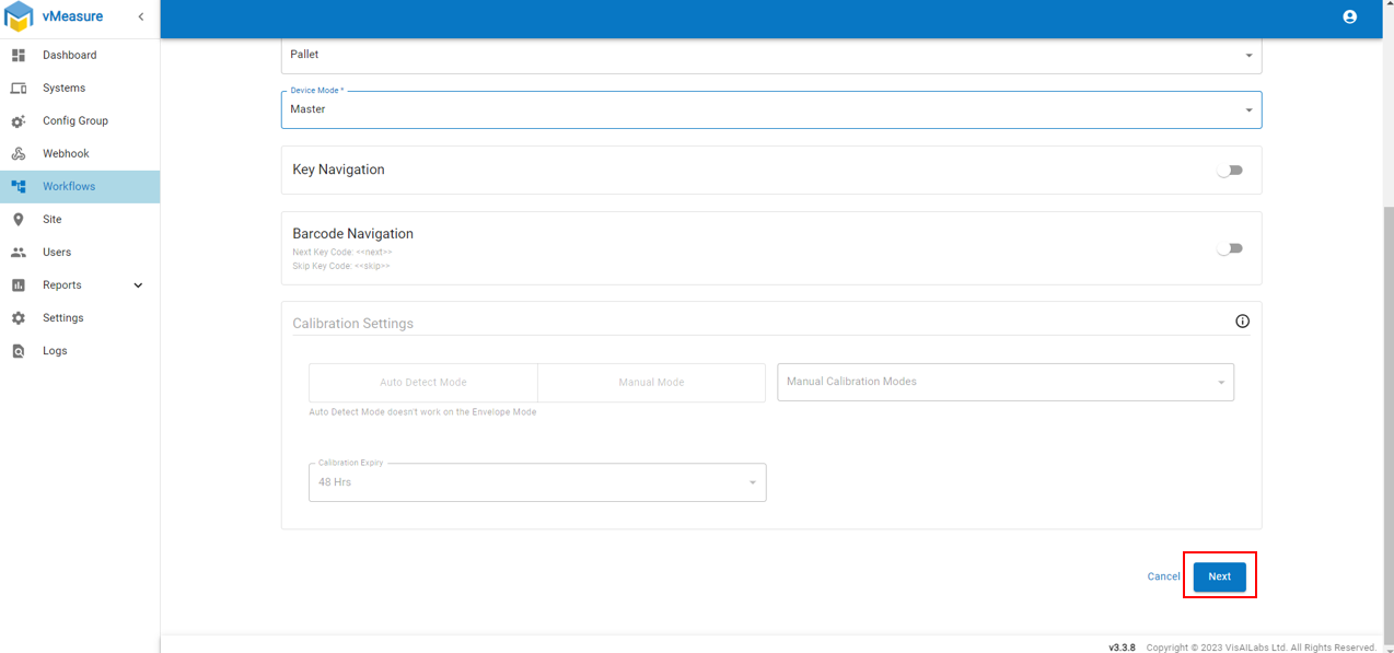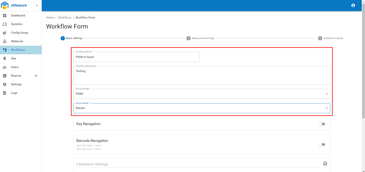 Step 4: Enter workflow name and select "Device Model" as "Pallet" and "Device Mode" as "Master"