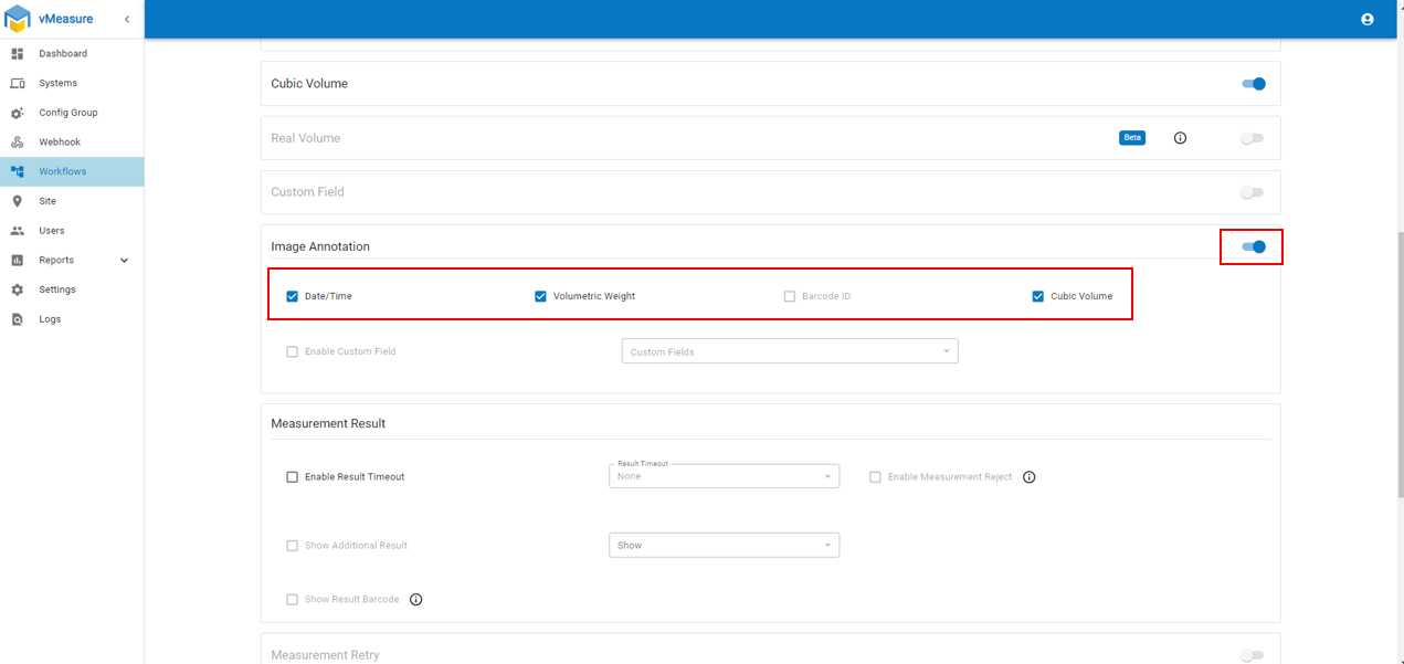 Step 7: Enable "Date/Time" , "Volumetric Weight" and "Cubic Volume" in "Image Annotation"