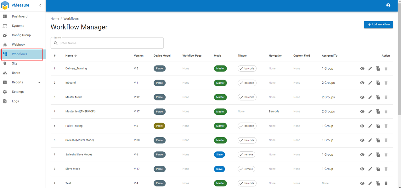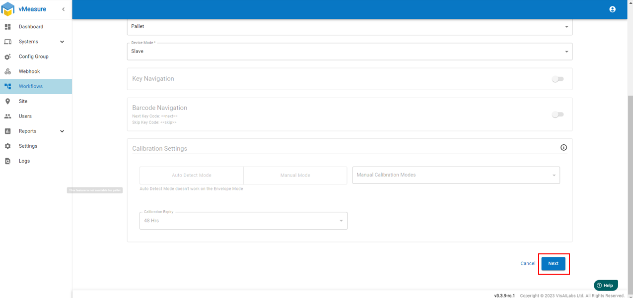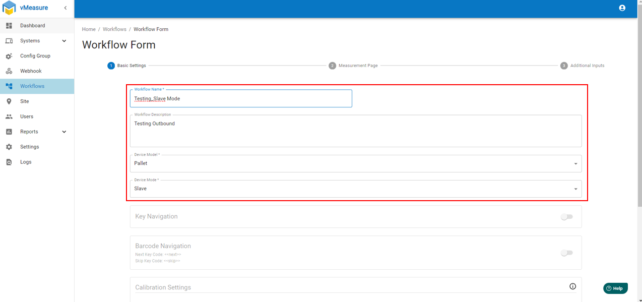 Step 4: Enter workflow name and select "Device Model" as "Pallet" and "Device Mode" as "Slave"