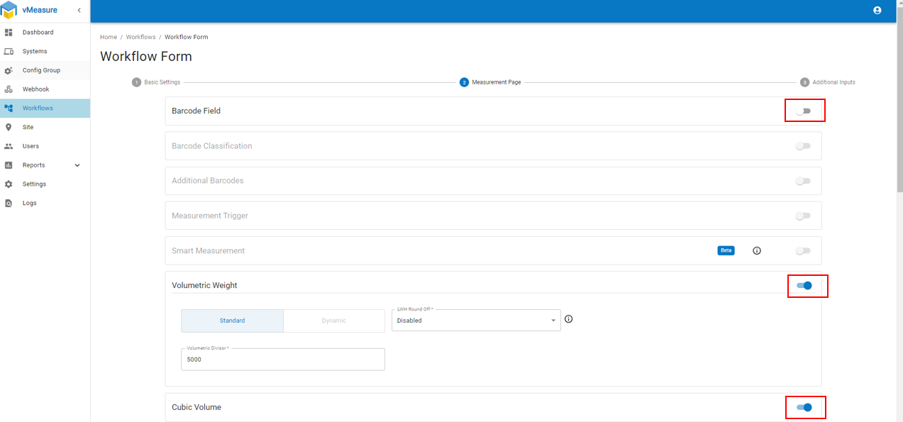 Step 6: Make sure "Barcode Field" is disabled and enable "Volumetric Weight", "Cubic Volume" and "Image Annotation"