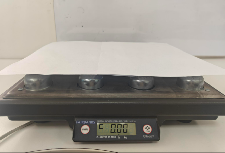 Step 3: Place the calibration sheet or an A4 sheet on the device before starting the calibration to prevent failure. And make sure the weight is "Zero"