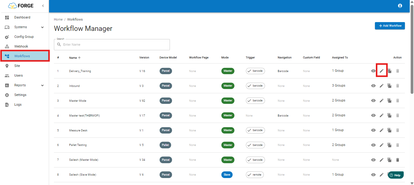 Step 3: Edit the desired workflow.
