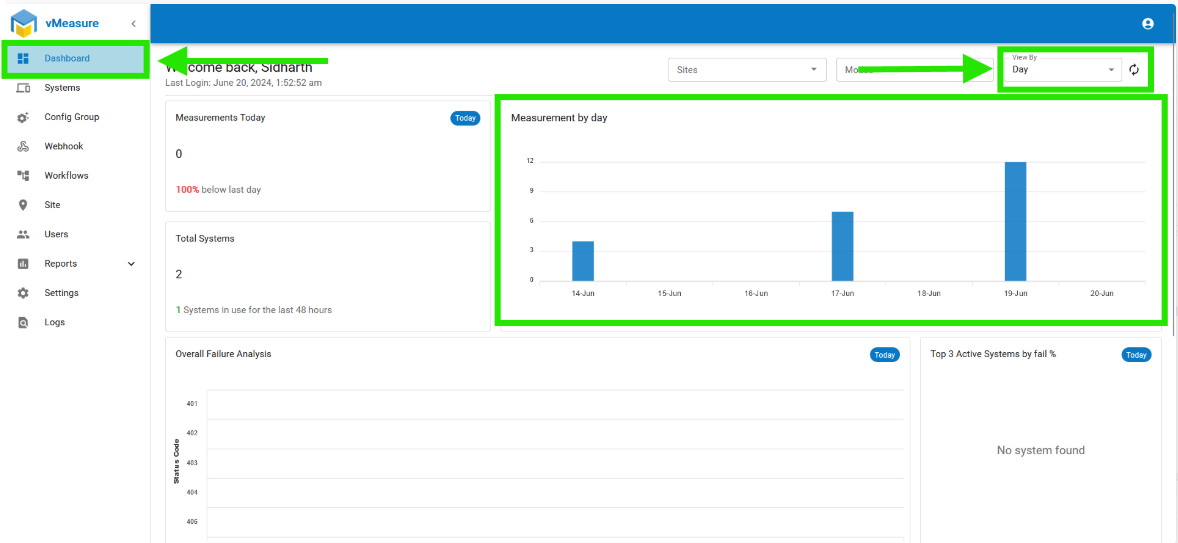 Step 2: After that, it navigates to the "Dashboard" page, where you may view the measurements made during the day.