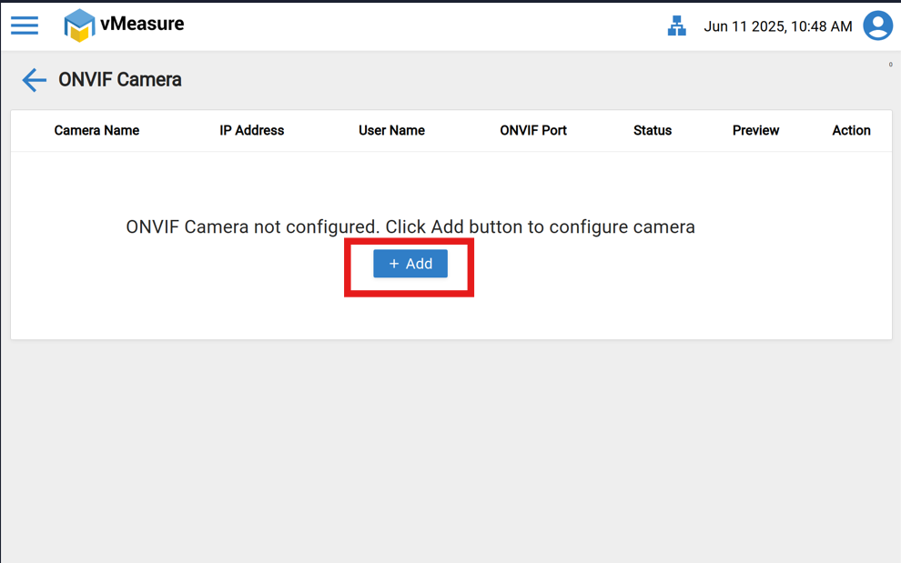 Step 4 - On the ONVIF Camera page, locate the "ADD" button and click on it.
