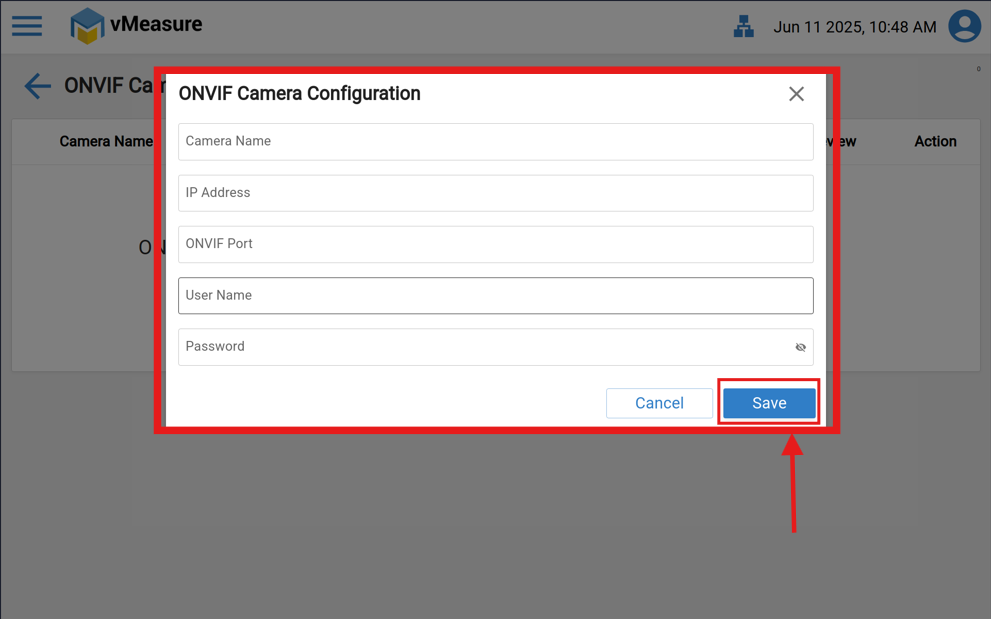 Step 5 - Enter all the required details, such as Camera name, IP address, ONVIF port, Username, and Password, then click "Save."