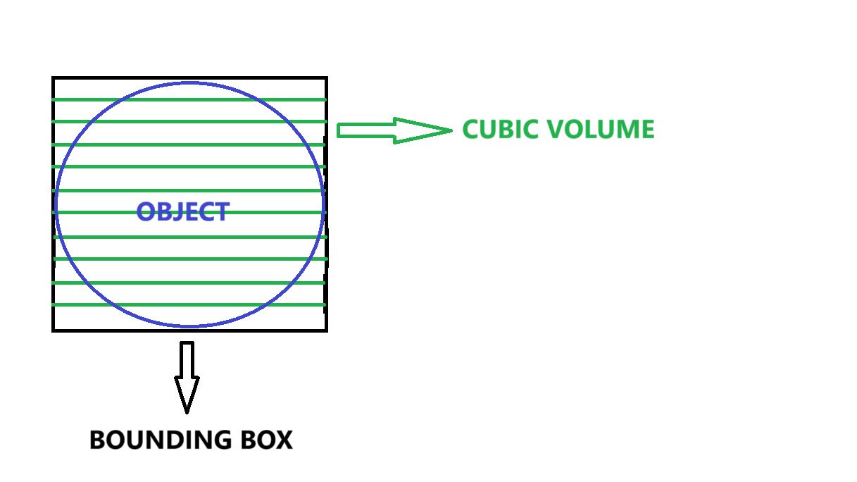Cubic Volume is the volume of a box that completely encloses an object. It is calculated by multiplying the length, width, and height of the bounding box. Please find the sample below for your understanding.