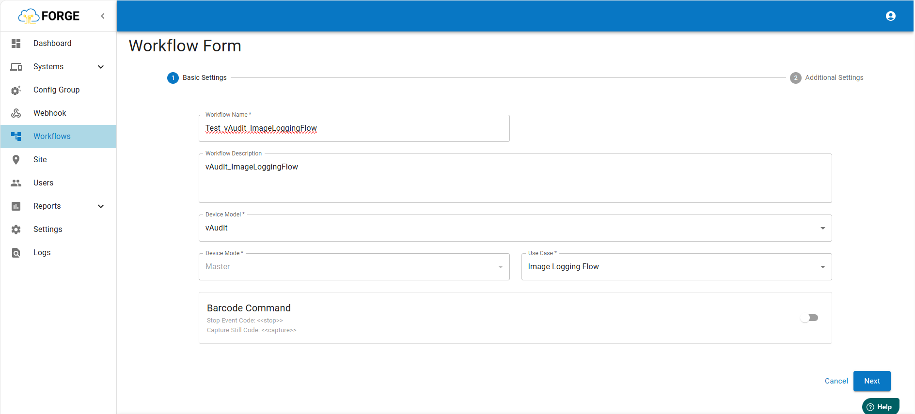 Step 5: From the Use Case dropdown, select “Image Logging Flow” and click “Next”.