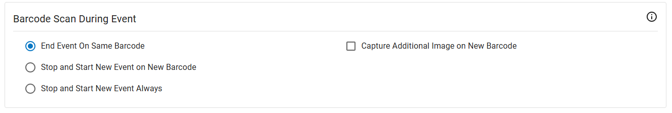 Note: The option to capture additional images is only available when using "End Event on Same Barcode" mode.