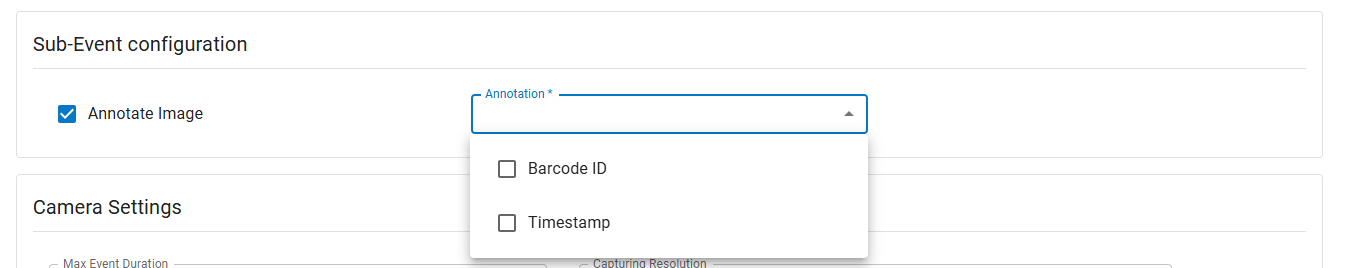Step 9: Under Sub-Event Configuration, select “Annotated Image” and choose relevant details like: