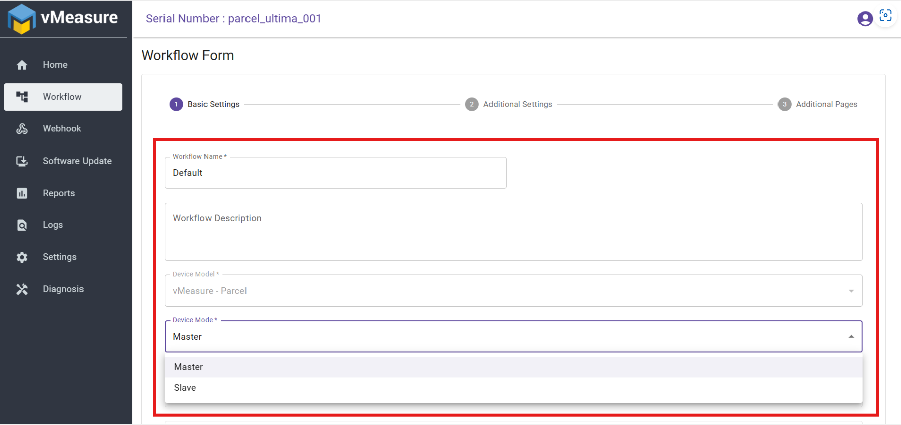 Step 4: Enter a name and description for your workflow, and In Device Mode, select Master or Slave.