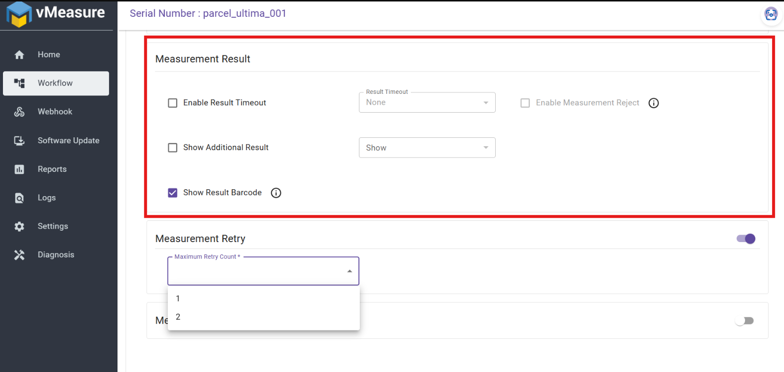 Step 15: In the Measurement Result section, enable "Result Timeout" to allow a preview of the measurement for up to 20 seconds and Measurement Retry option as well.