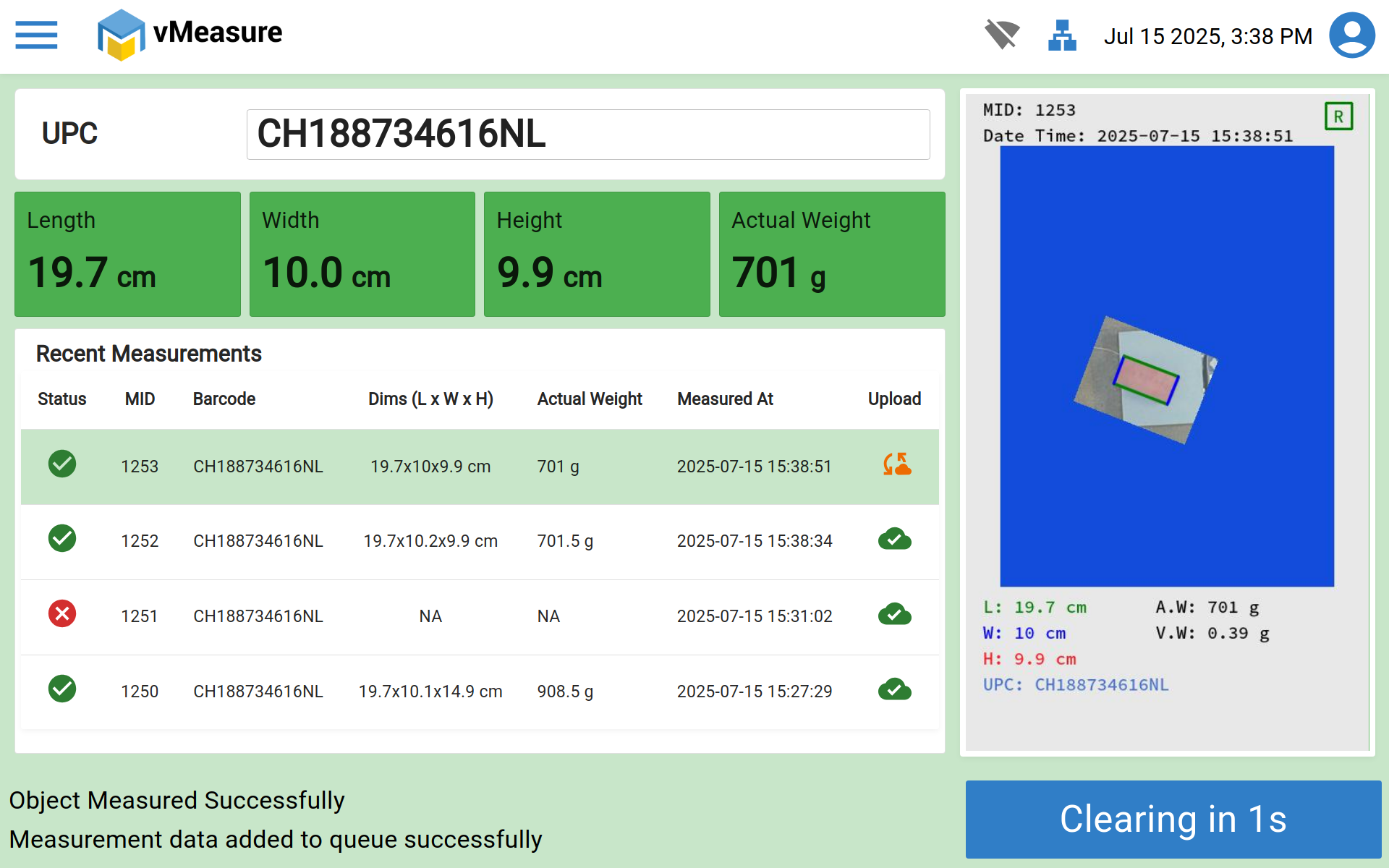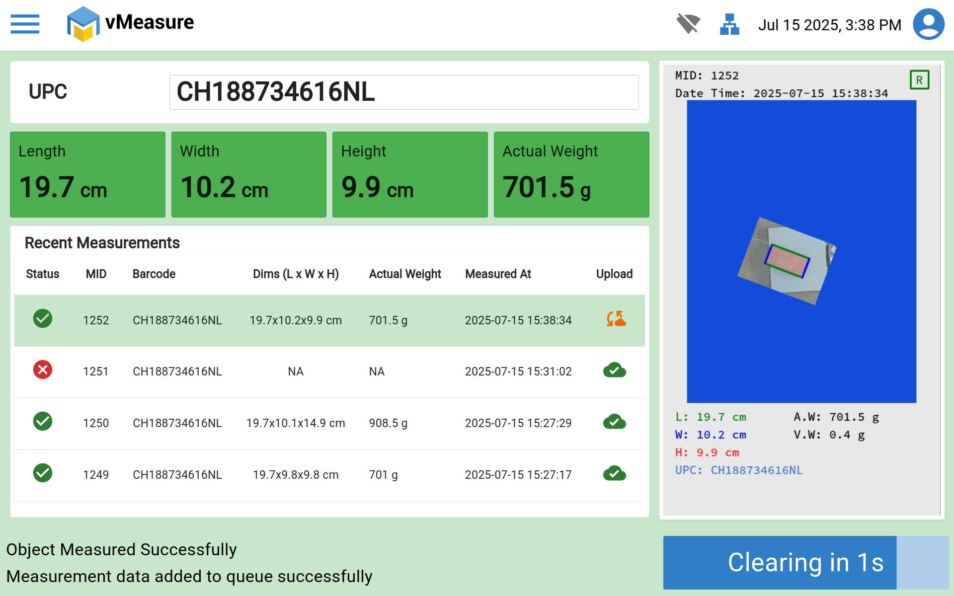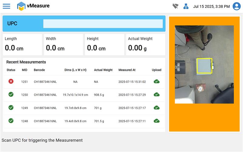 Step 8 : After updating the workflow you can get an output from device measurement page. Then place the shipment and scan it.